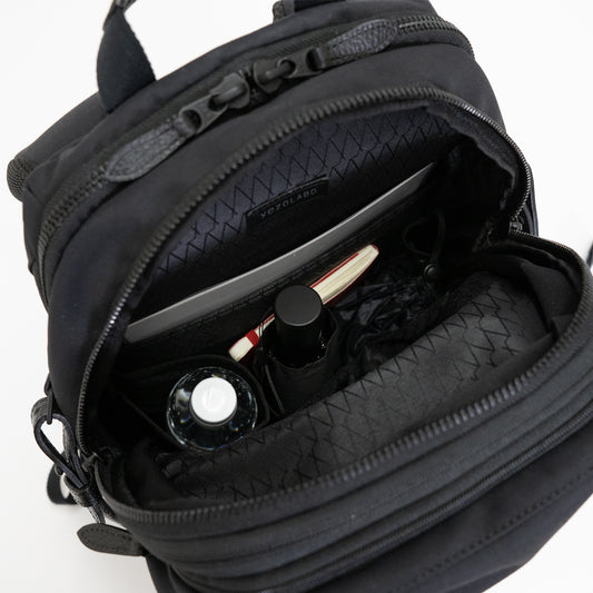 • シンプルなフェイスデザインながら、ワーク・デイリーなどシーンによる荷物の増減に対応する、エキスパンダブル機能や内装デザインが施された「Floe (フロウ)ワーク&デイリーバックパック」Mサイズ。 Floe ワーク&デイリーバックパックの背面下部にはファスナーポケットを配置し、長財布やICカード、スマートフォンなど貴重品を収納できます。