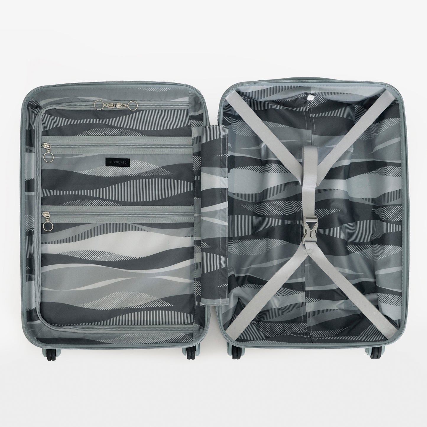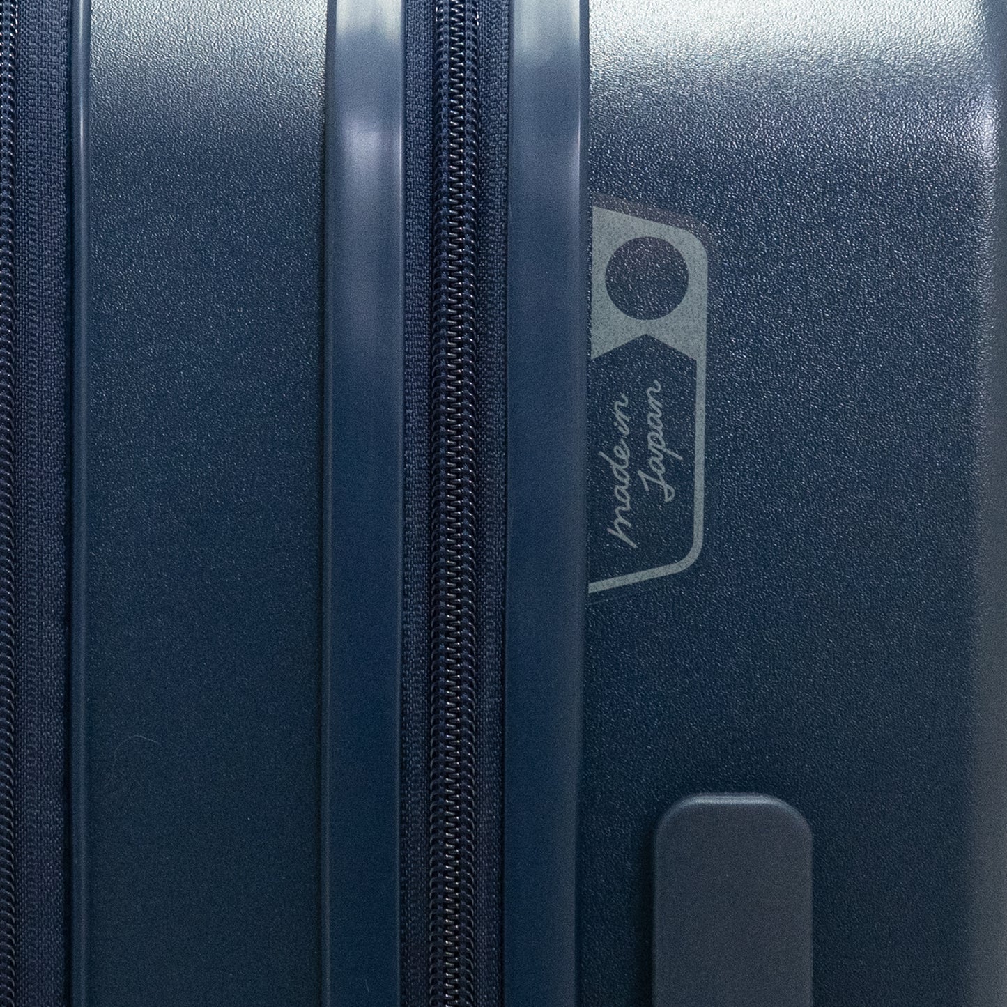 The interior is patterned to match the color of the suitcase, and the main shell (suitcase exterior) has a ribbed design reminiscent of brushstrokes, highlighting the beautiful three-dimensional effect, like brushwork in a picture frame. It also has a front pocket that can hold a 14-inch laptop, a stopper that stops with one push, and silent casters, making it extremely convenient to use. This Japanese-made suitcase is carry-on size (for international and domestic flights with 100 seats or more) and is suitable for business trips or trips of one or two nights.