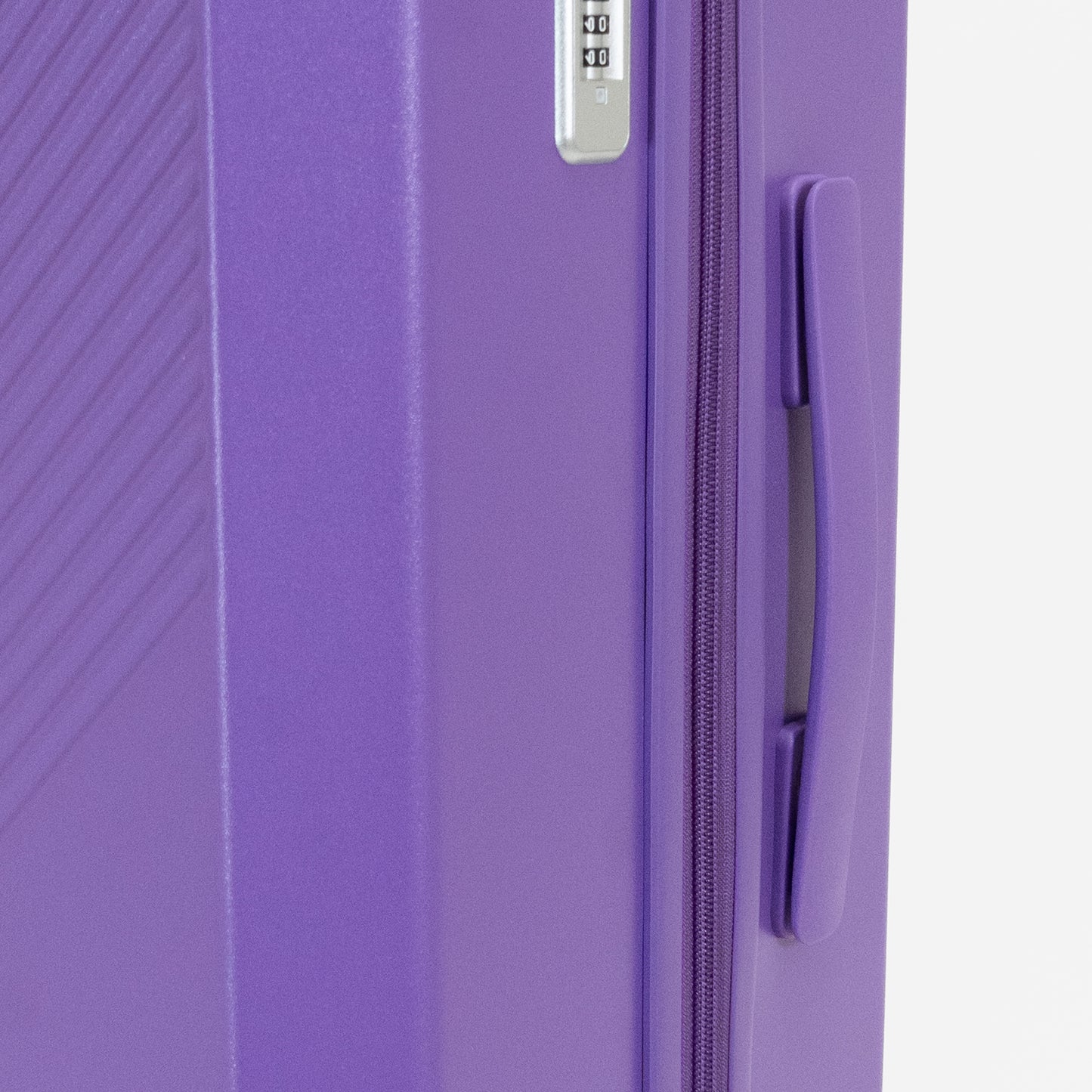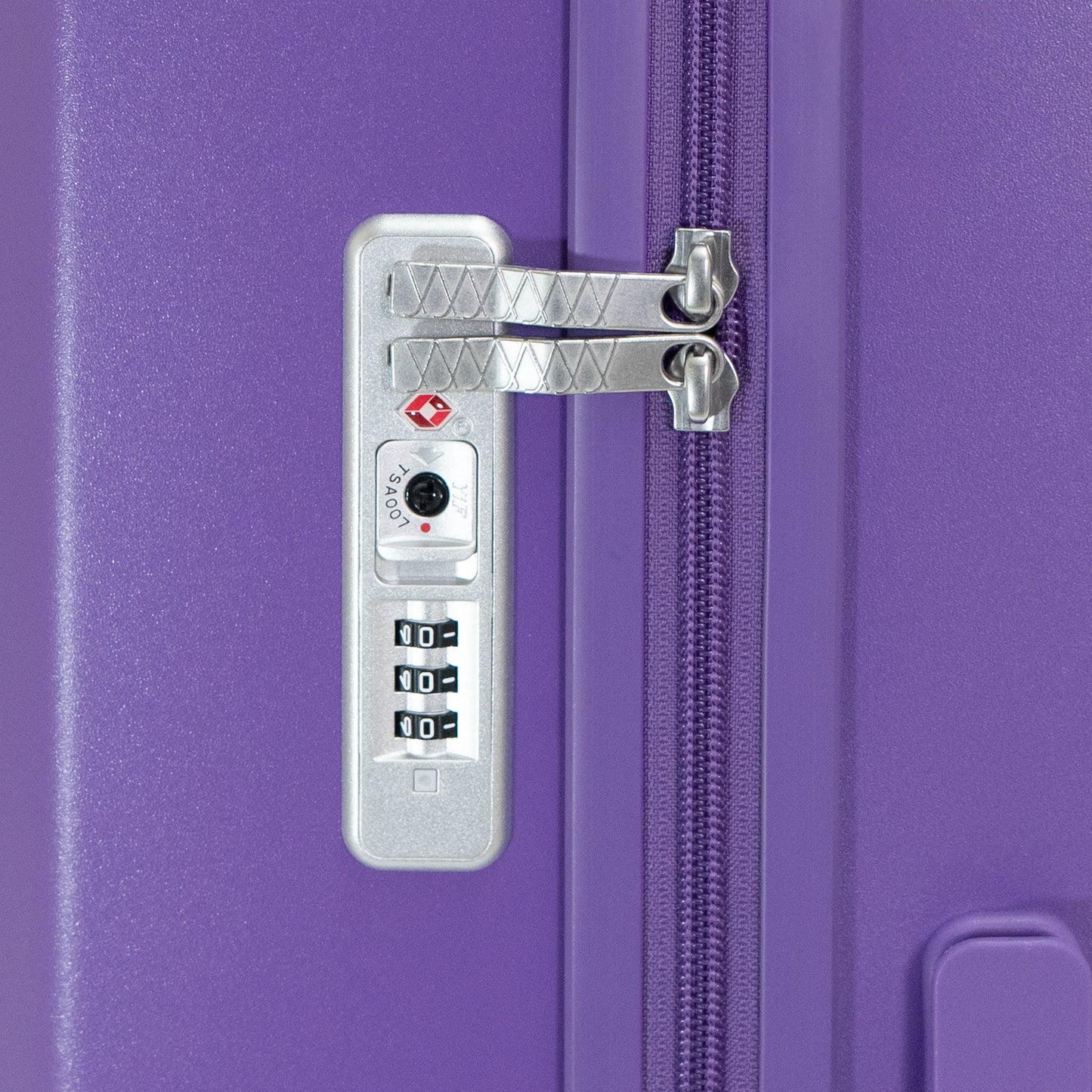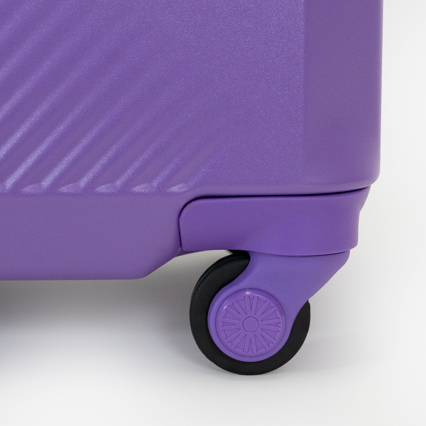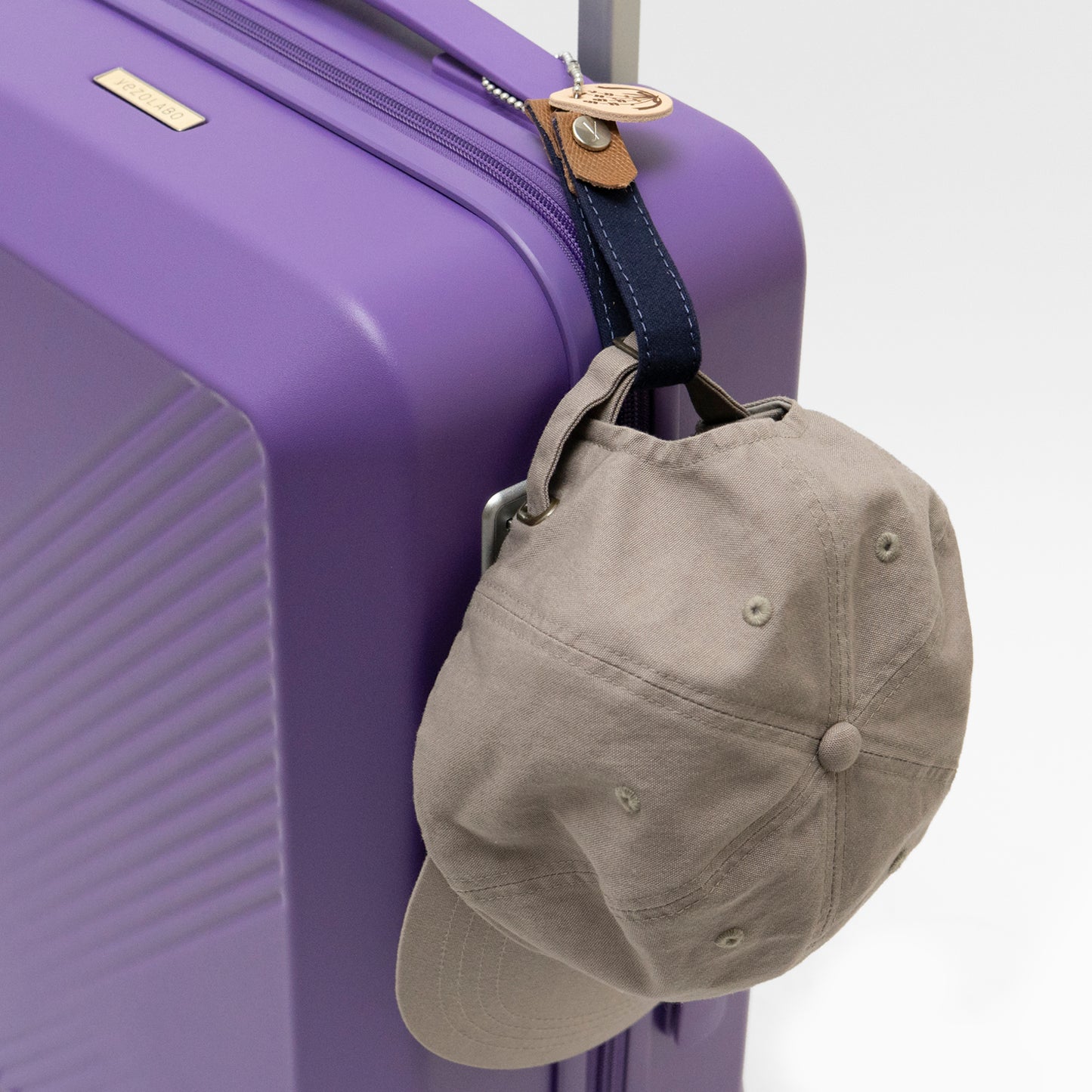 It comes with a chic purple charm that complements the color of the main body. It can be used as an accent or marker for your suitcase, or as a temporary luggage hanger.