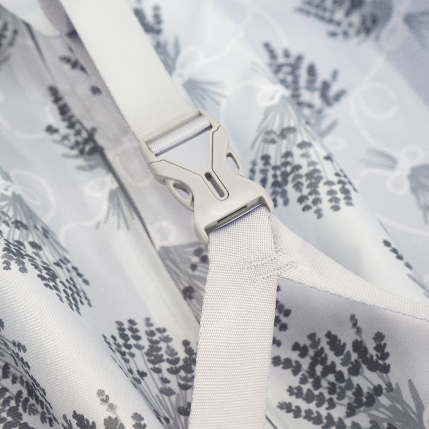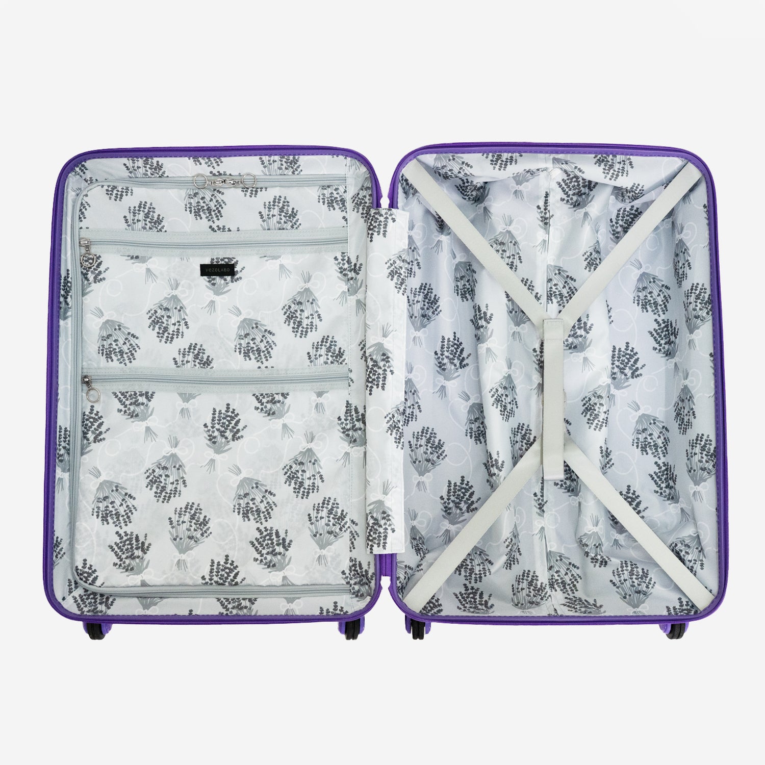 The interior features a pattern design with motifs collected in different colors to match the color of the main shell. This design features a lavender bouquet tied together with a cute ribbon.