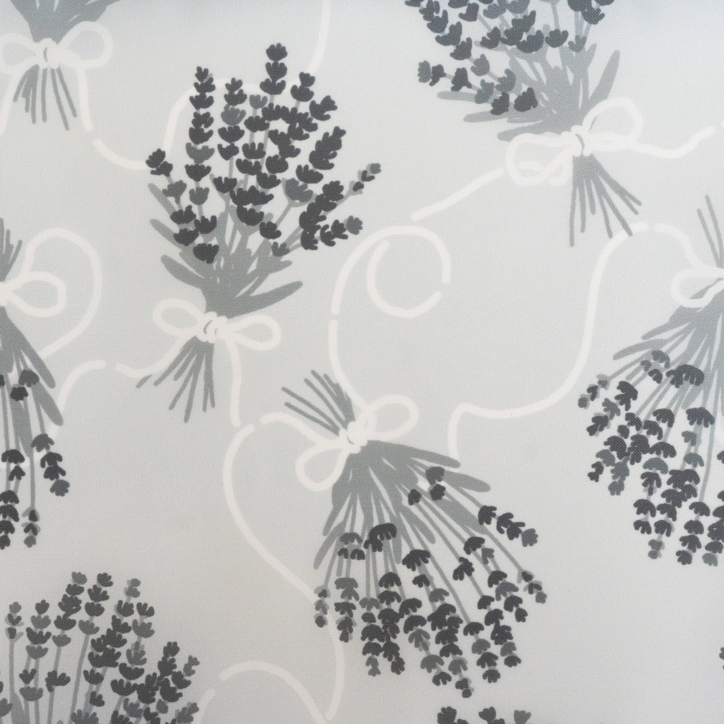 The interior design features an illustrated pattern with a lavender bouquet motif.