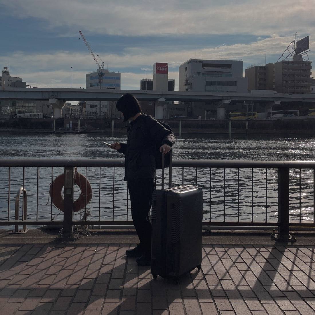 The remaining part that was cut when forming the shell is crushed into small pieces, rolled out into a board shape, and reshaped to make a new suitcase. Suitable for business trips and trips lasting 5 to 7 nights. This is a large suitcase made in Japan with a total size of 155cm .