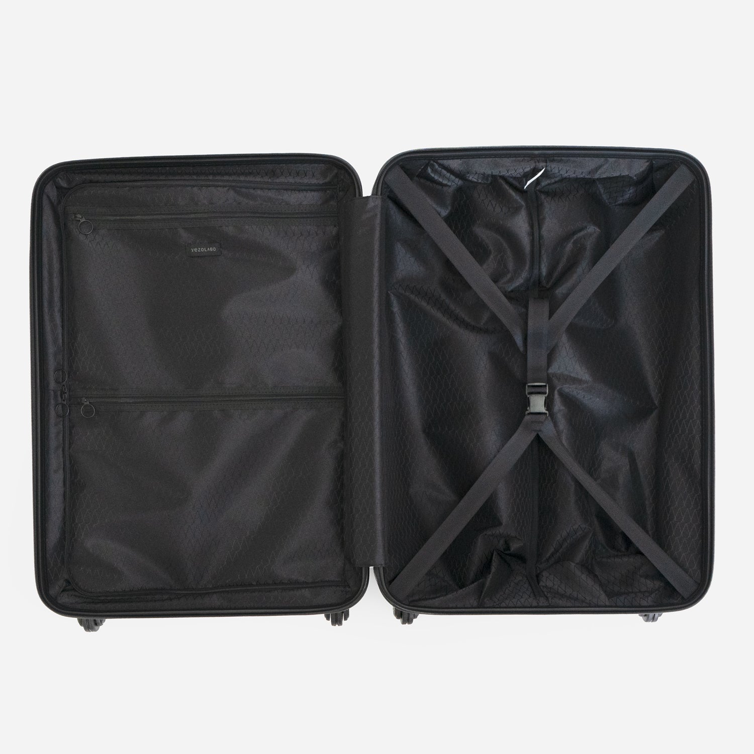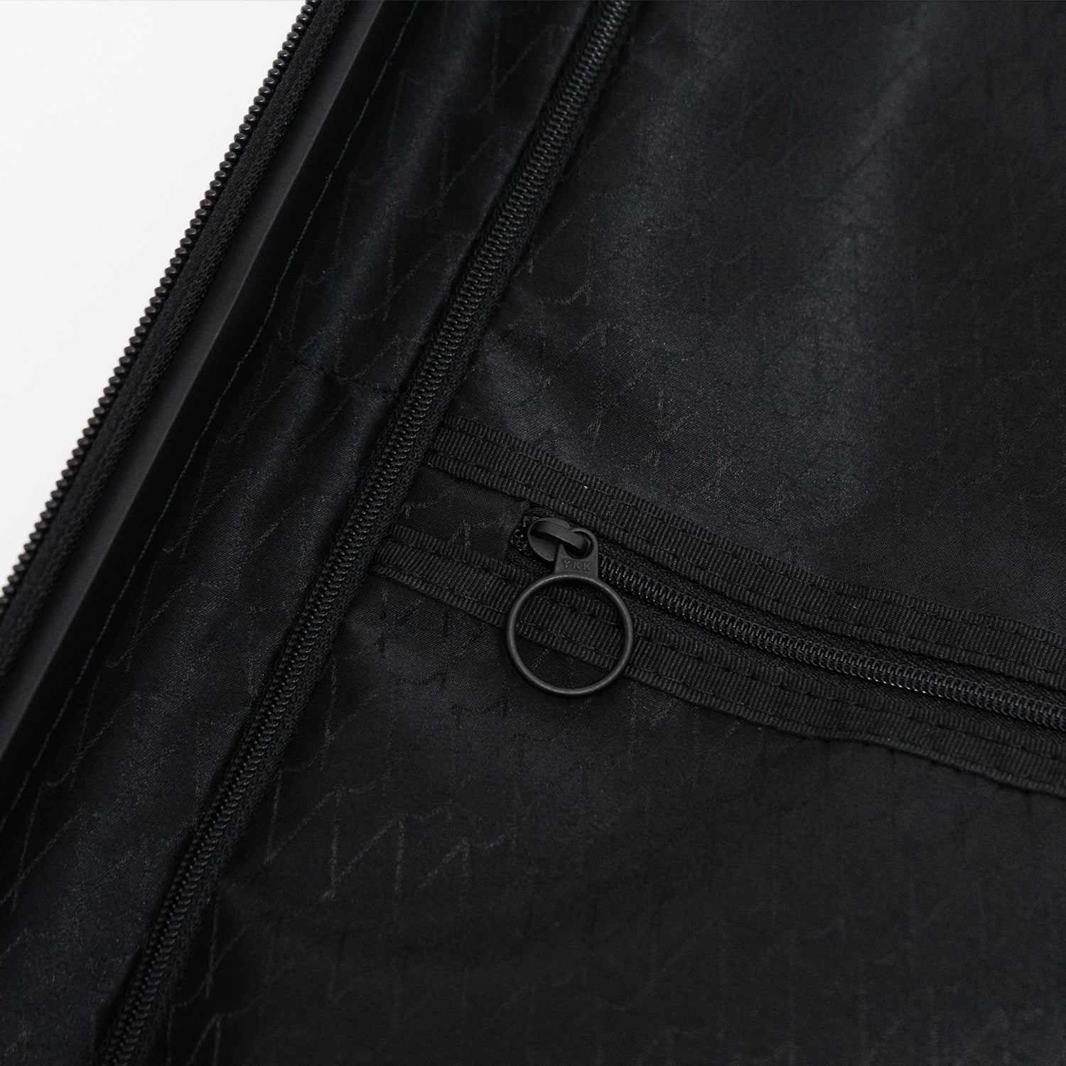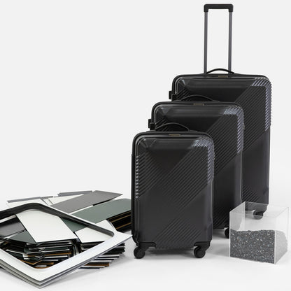 Shell scraps created during the manufacturing process are recycled and reused as suitcase shells. The main body shell is made from 100% recycled off-cut materials.