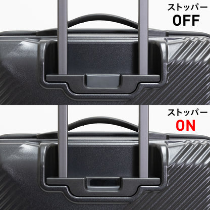 It can be easily operated with a switch on hand, and is equipped with a caster stopper function to prevent unexpected movement on buses, trains, slopes, etc. Push the button all the way down to lock it, and push it again to return it to its original position to unlock it.