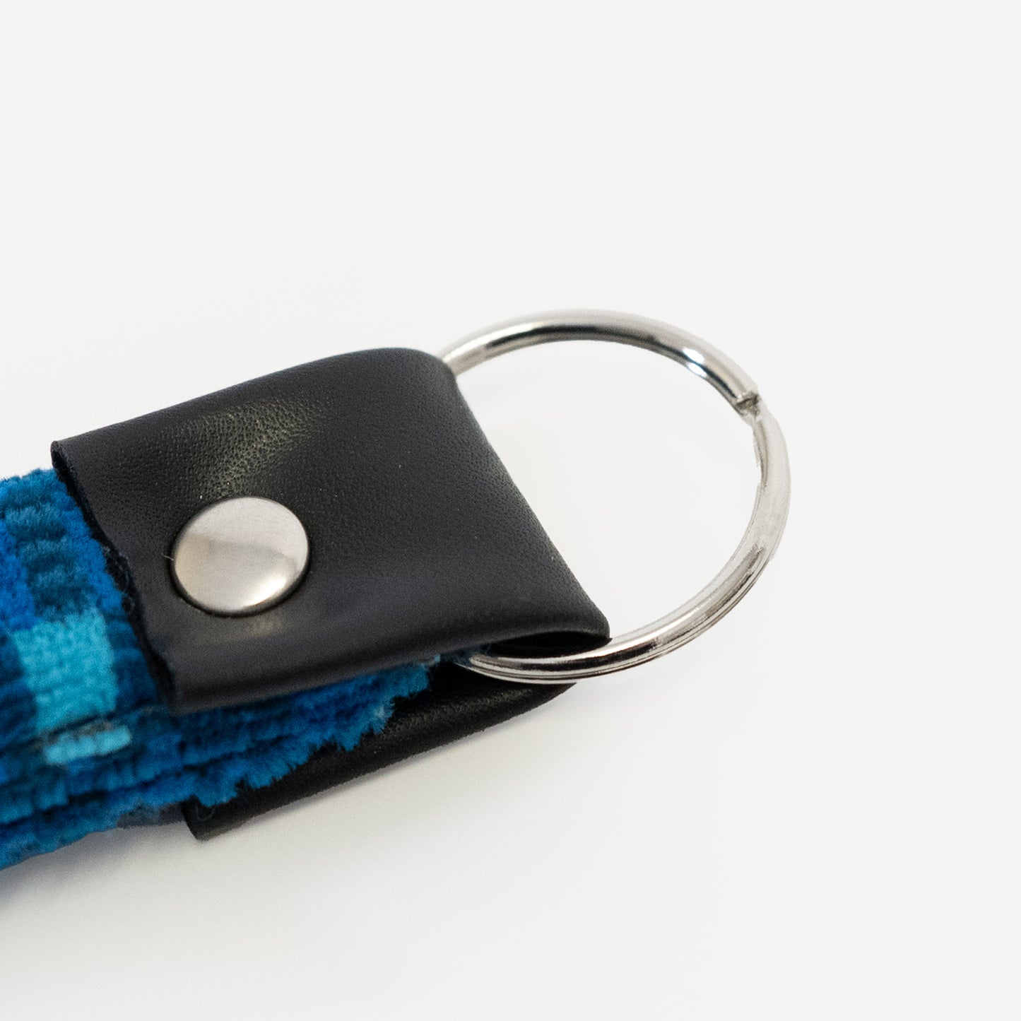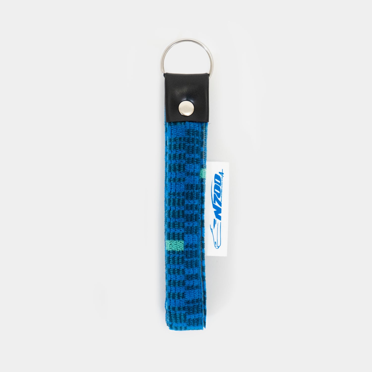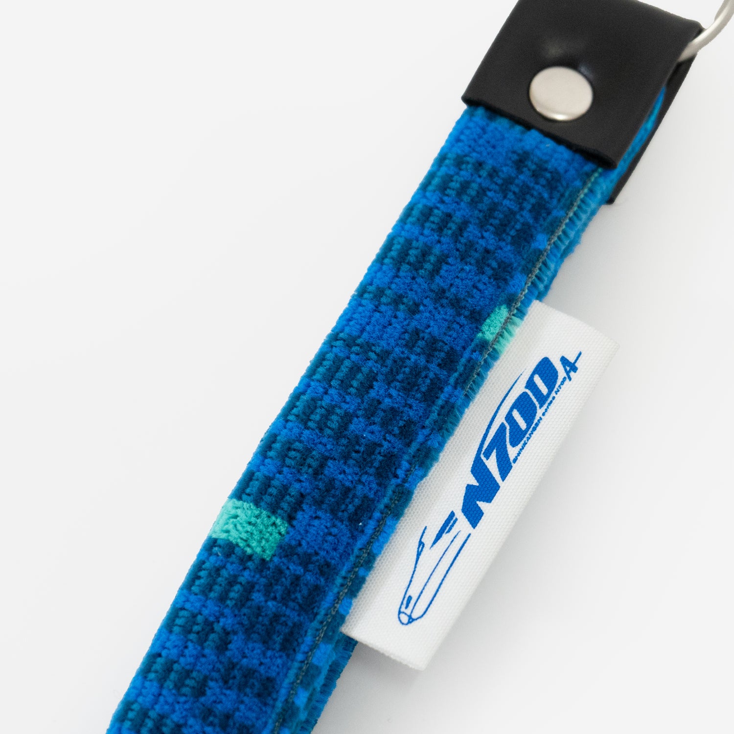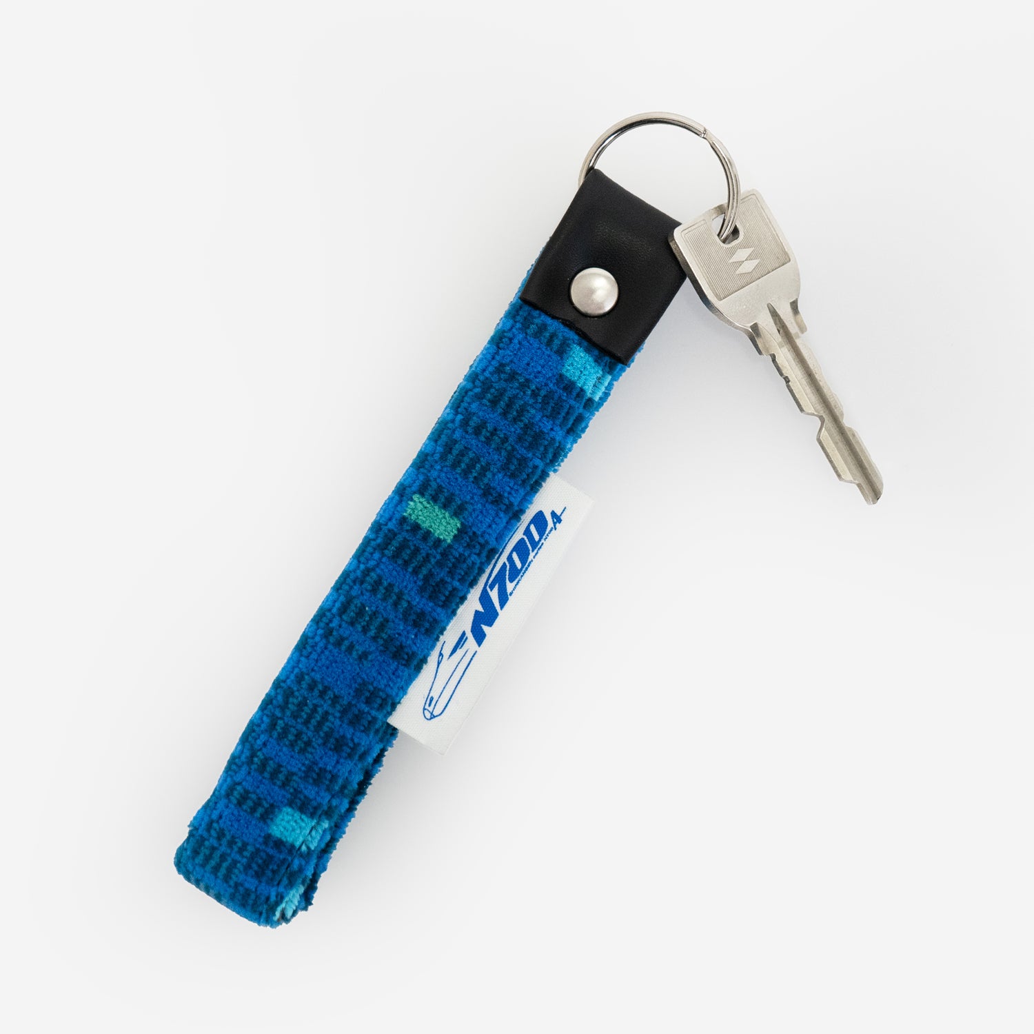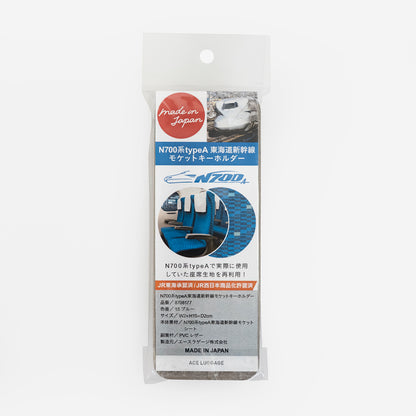 A Japanese-made key chain made using the seat moquette fabric of the Tokaido Shinkansen N700 series type A ordinary car.