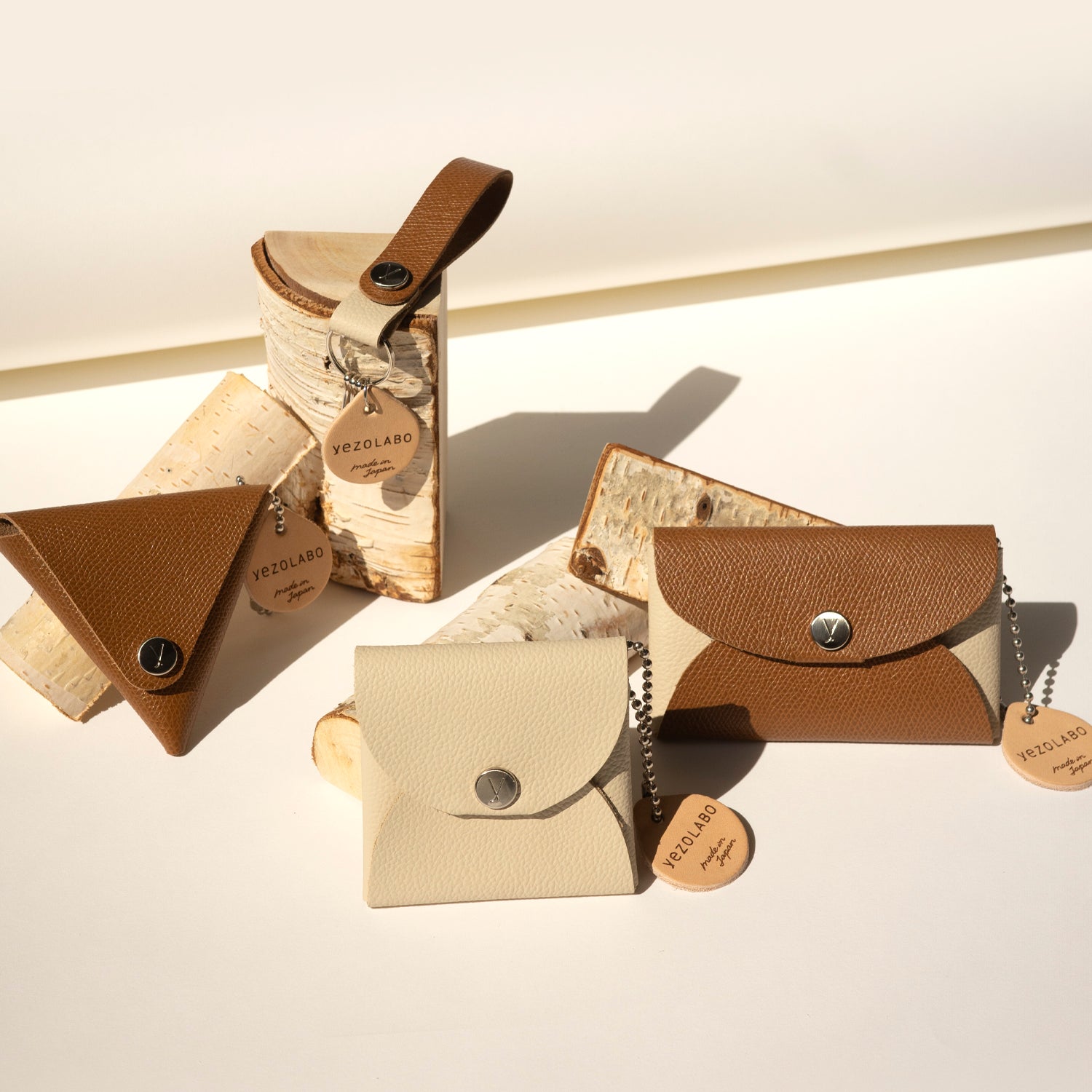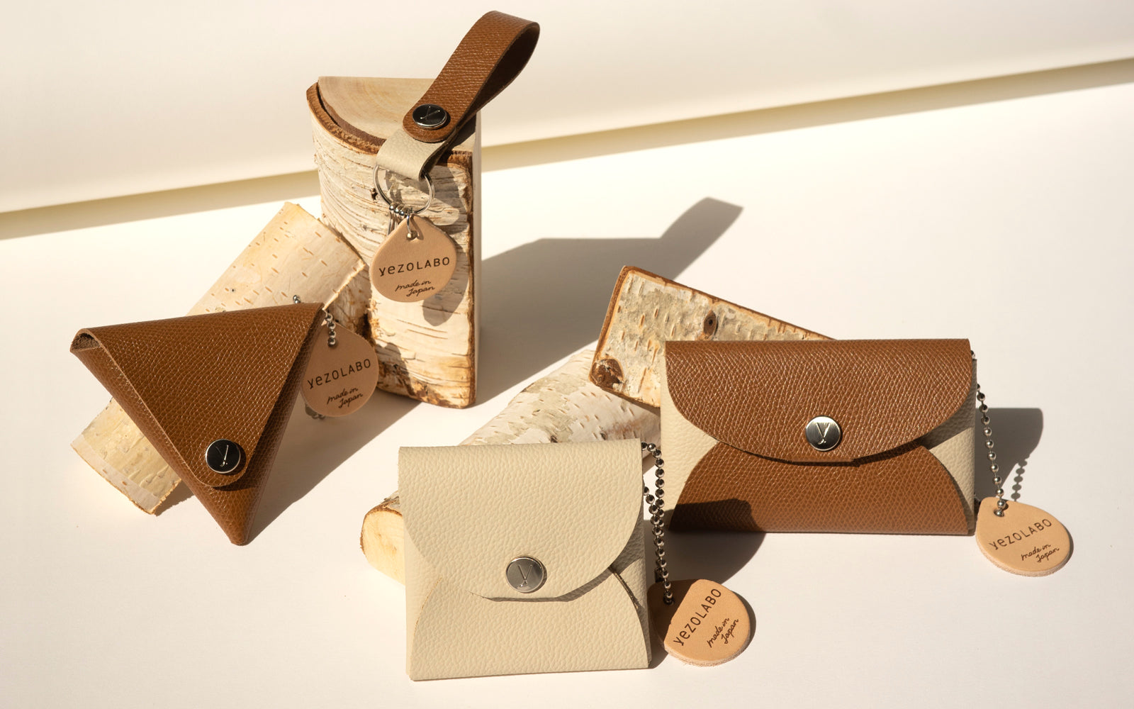 yezoLABO made in japanの彫刻が施されたレザータグ付き。