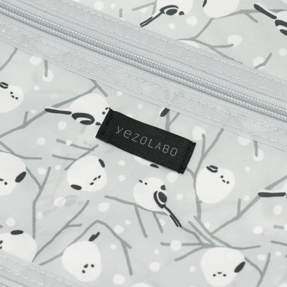 内装には、本体シェルのカラーに合わせて、色彩採集したモチーフのパターンデザインを施しています。雪と戯れる愛くるしいシマエナガのデザインです。