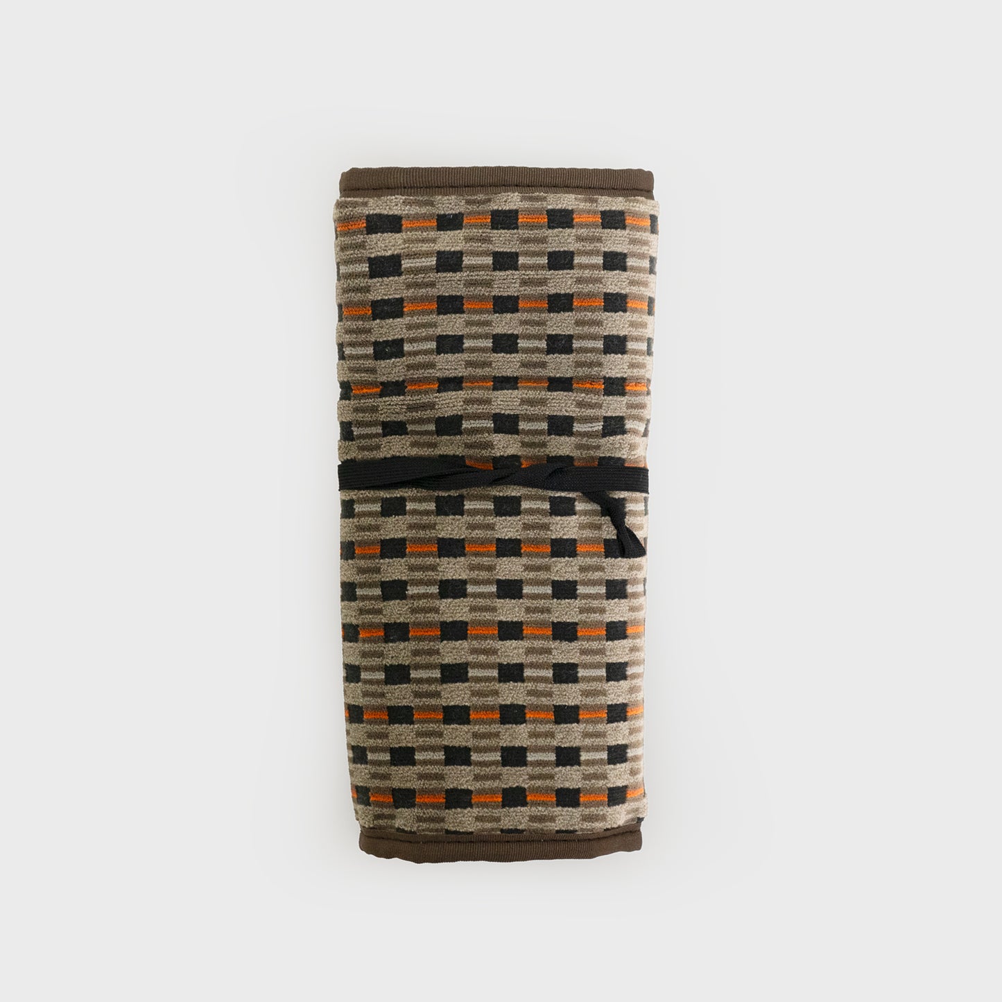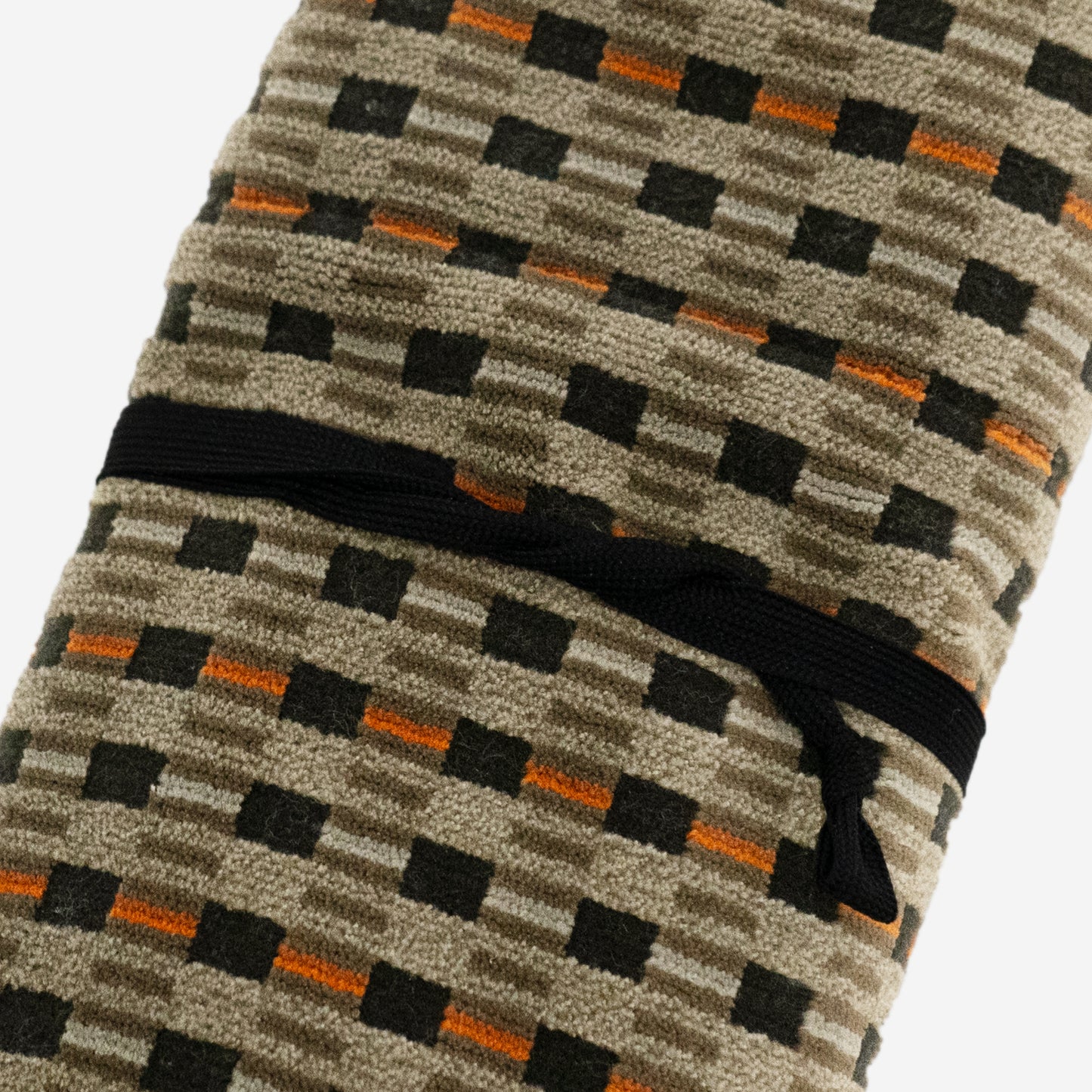 また、ダークブラウンのスクエアパターン部分はパイルの毛足がカットされており、立体感のある触り心地です。