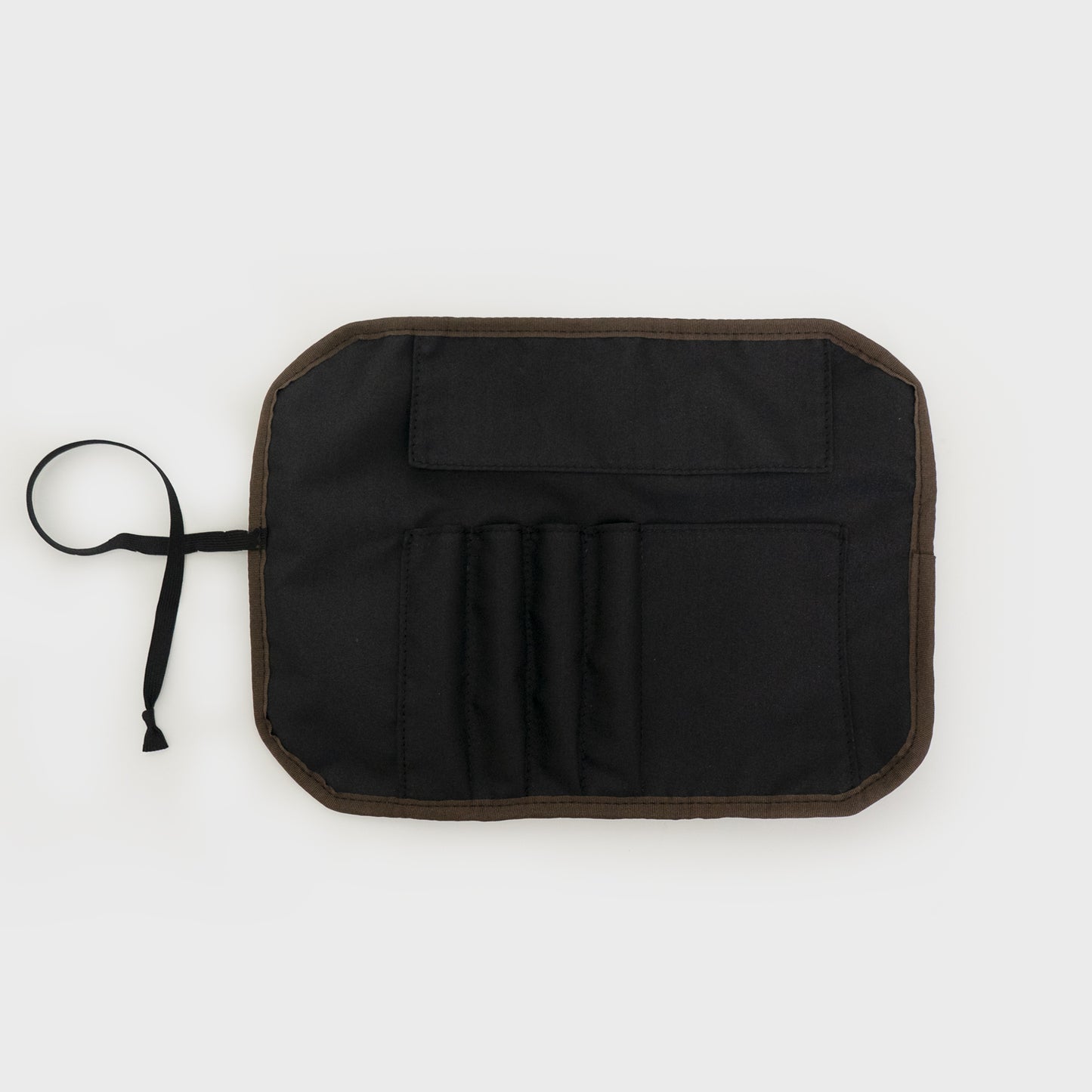 上部のフラップは、ペンケースを巻いたときにペンが傷つきにくい構造になっています。