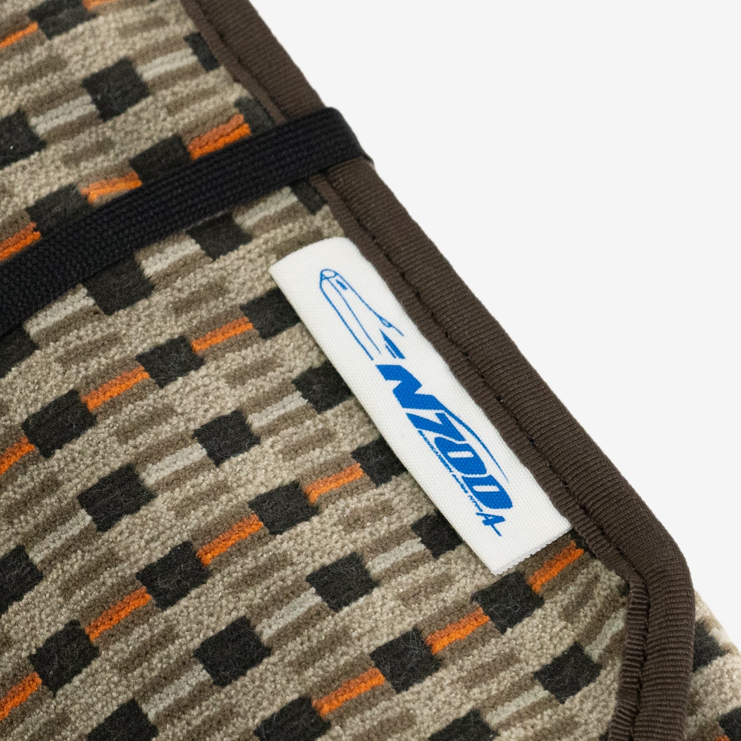 実際に東海道新幹線N700系typeAのグリーン車で使われていたモケット生地を採用。座席数が少ないため、1車体の新幹線に対して約15%しかない貴重な生地です。廃棄されるはずだった生地を洗浄後、再利用できる部分を選び、国内で丁寧に縫製しています。お気に入りのペンや15cm定規なども収納可能な、くるっと丸めて紐で留めるロール式ペンケースです。東海道新幹線の横顔とN700系typeAのロゴマークがワンポイントです。